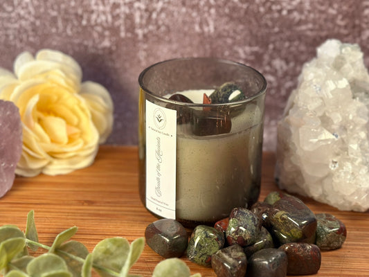 Breath of the Ancients – Organic Soy Crystal Candle with Dragon Blood Jasper | Eucalyptus, Cedarwood & Jasmine
